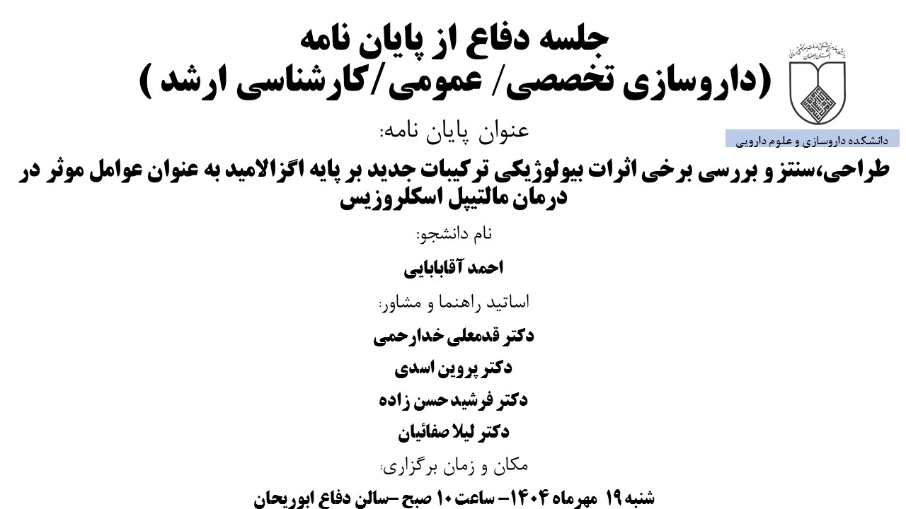آگهی جلسه دفاع آقای اخمد اقا بابایی