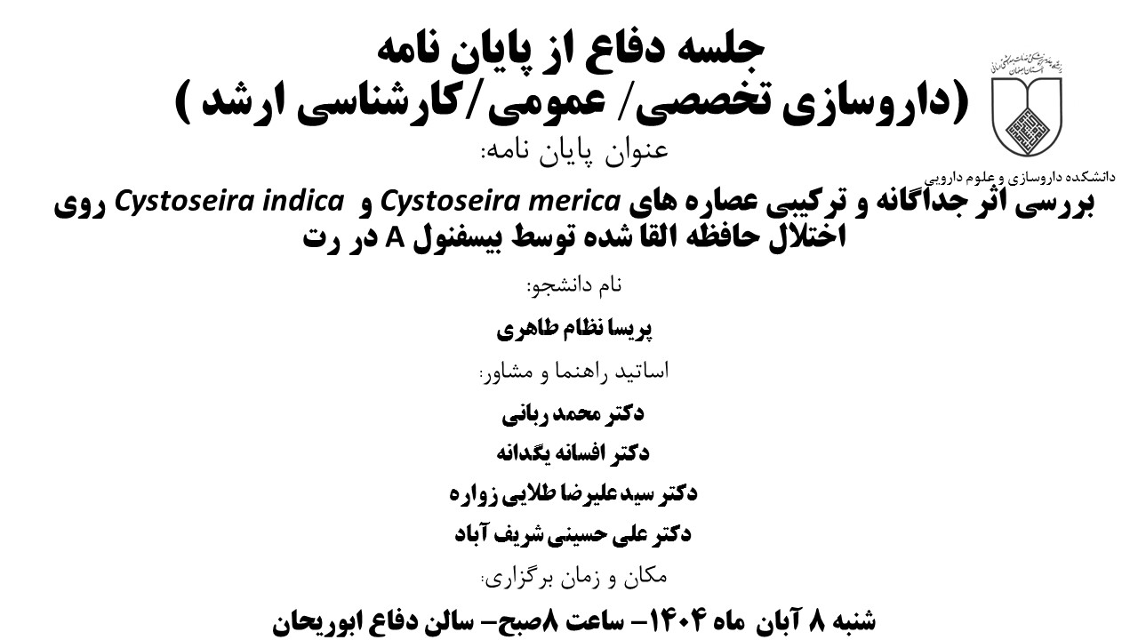 آگهی جلسه دفاع خانم پریسا نظام طاهری