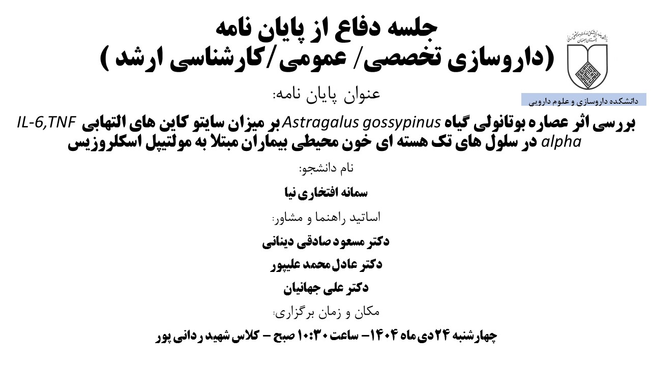 آگهی جلسه دفاع خانم سمانه افتخاری نیا